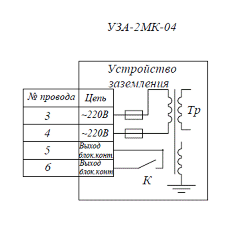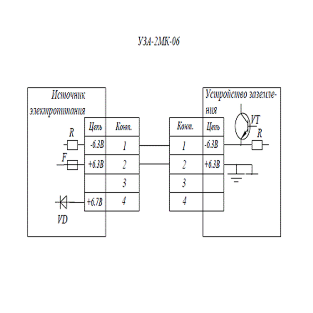 - Заземляющий проводник подключается к устройству УЗА-2МК.